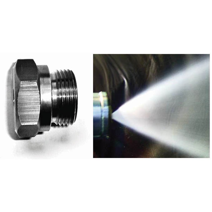 The OpDSH VFix nozzles are fixed area spraying devices, single or multiple, with excellent atomizing characteristic due to a sophisticated internal vortex ring which ensures very small water droplet size at low differential pressures.