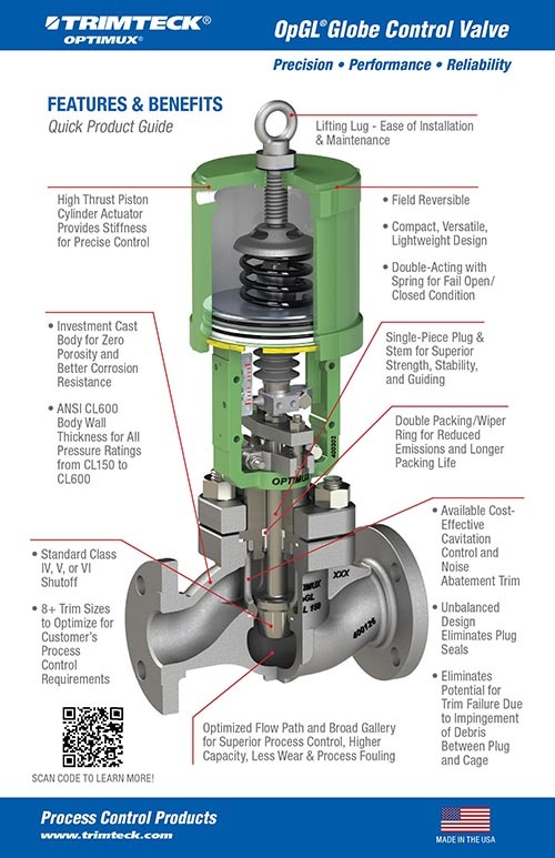 - Range of Trim Configurations From micro-flows to full capacity trims, and everything in between, the OpGL can be sized to optimally control according to your specific process parameters. A full line of anti-cavitation and noise abatement trims are available.