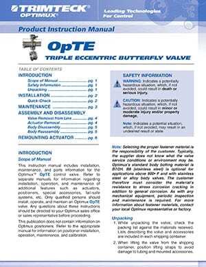 The OpTE high performance Triple Eccentric, or Triple Offset, Butterfly Valve is a robust isolation valve providing absolute zero leakage. Originally designed for steam isolation applications ranging from vacuum to high-pressure, the OpTE is now commonly used in liquid as well as gaseous services. The triple offset disc design is torque-seated and inherently fire-safe. Trimteck specializes in modifications of this design to handle extreme temperatures.