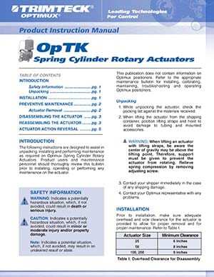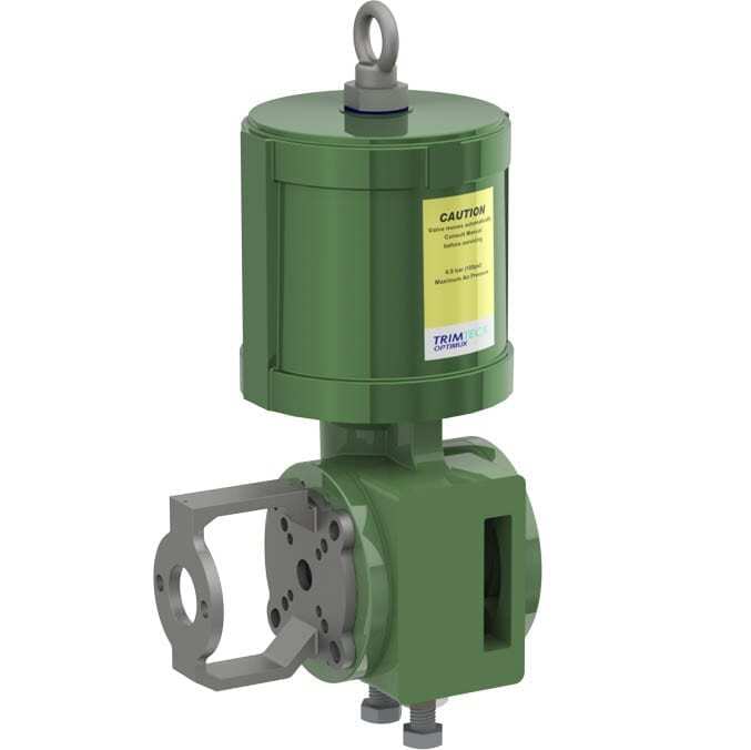 The Trimteck OpTK Rotary Piston-Cylinder Actuator combines high torque and pneumatic stiffness with excellent throttling capabilities. These characteristics are designed into a lightweight, rugged and compact assembly.